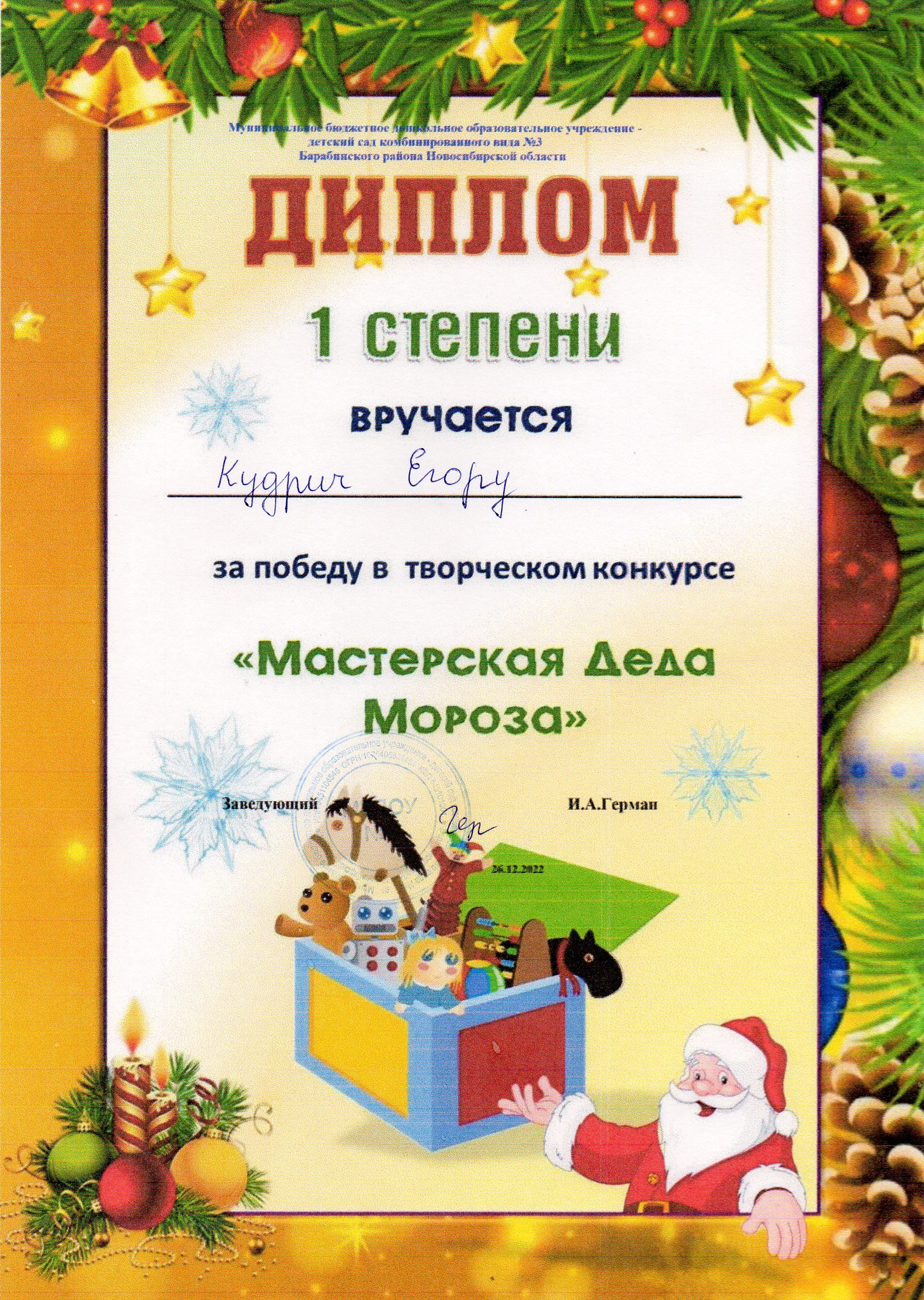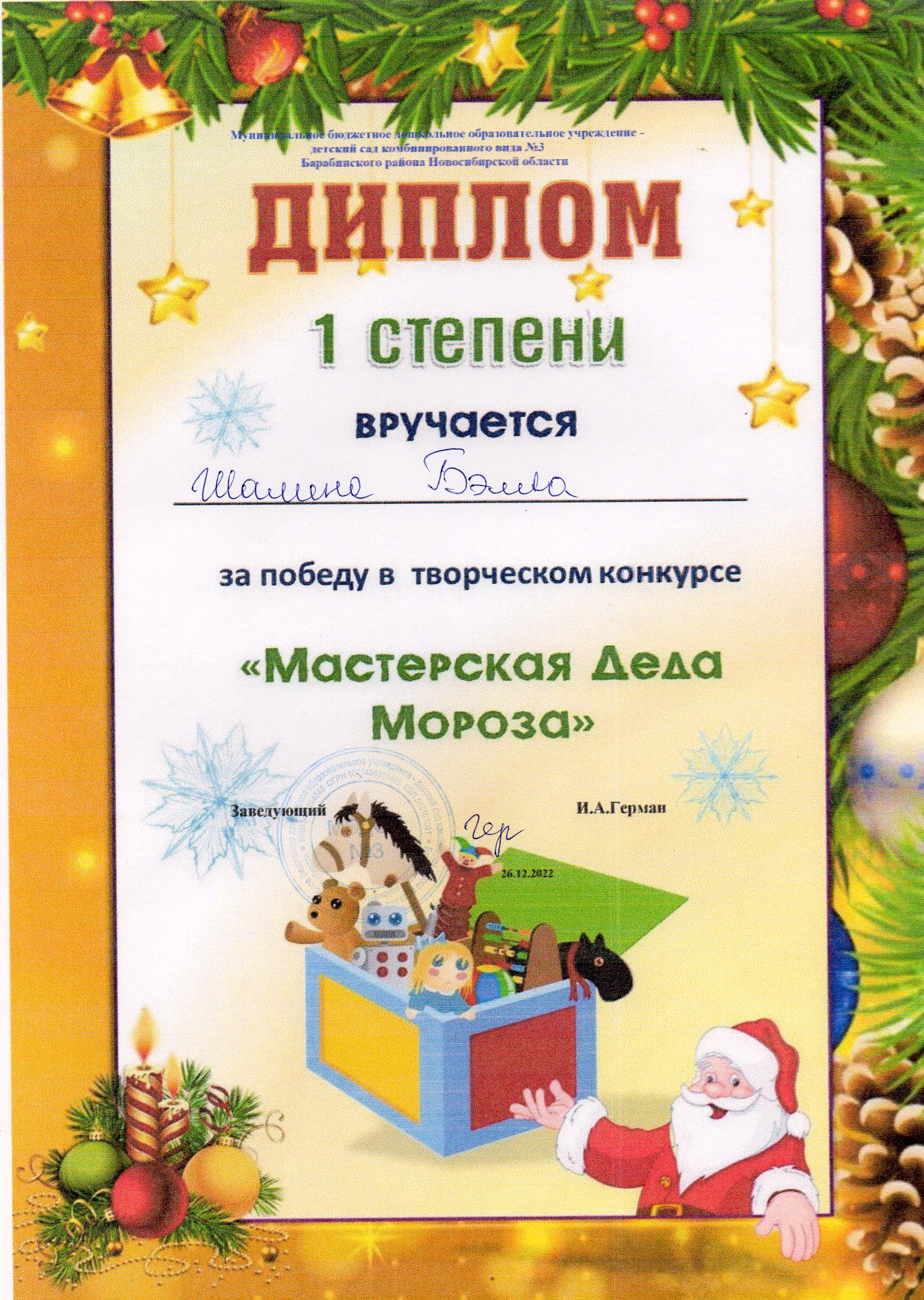 "Мастерская Деда Мороза" 2022г - степень