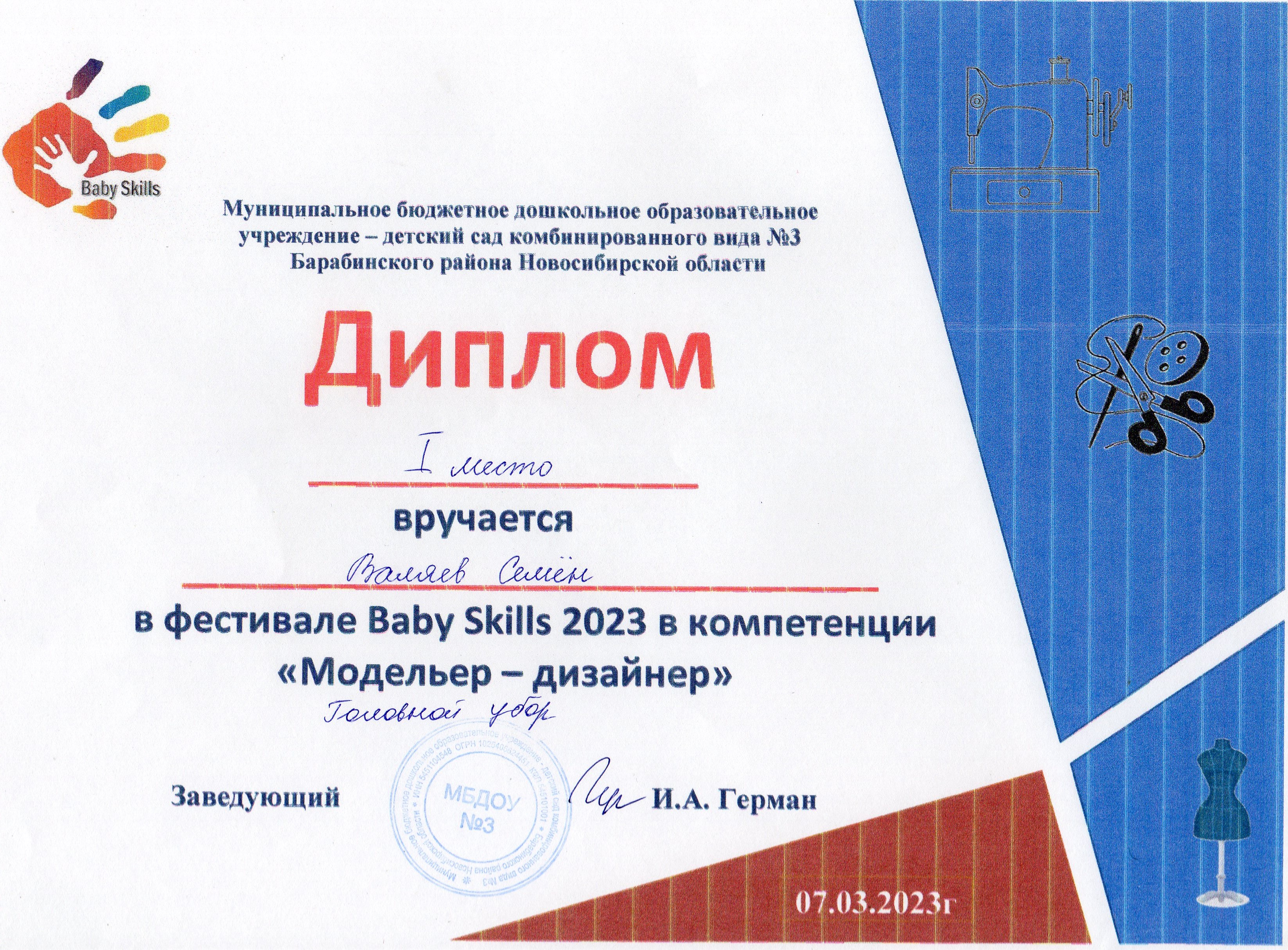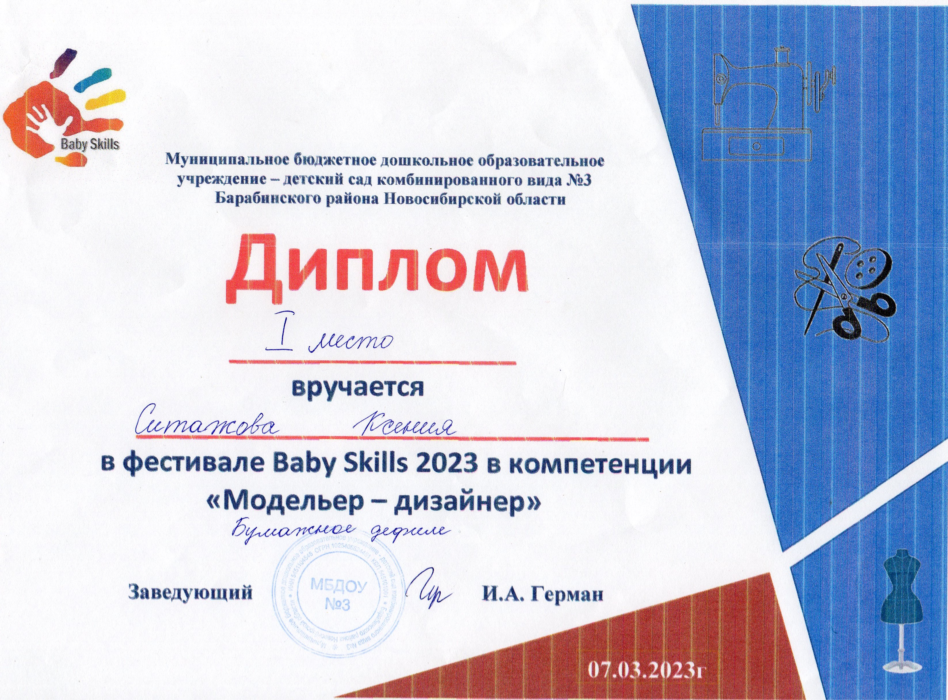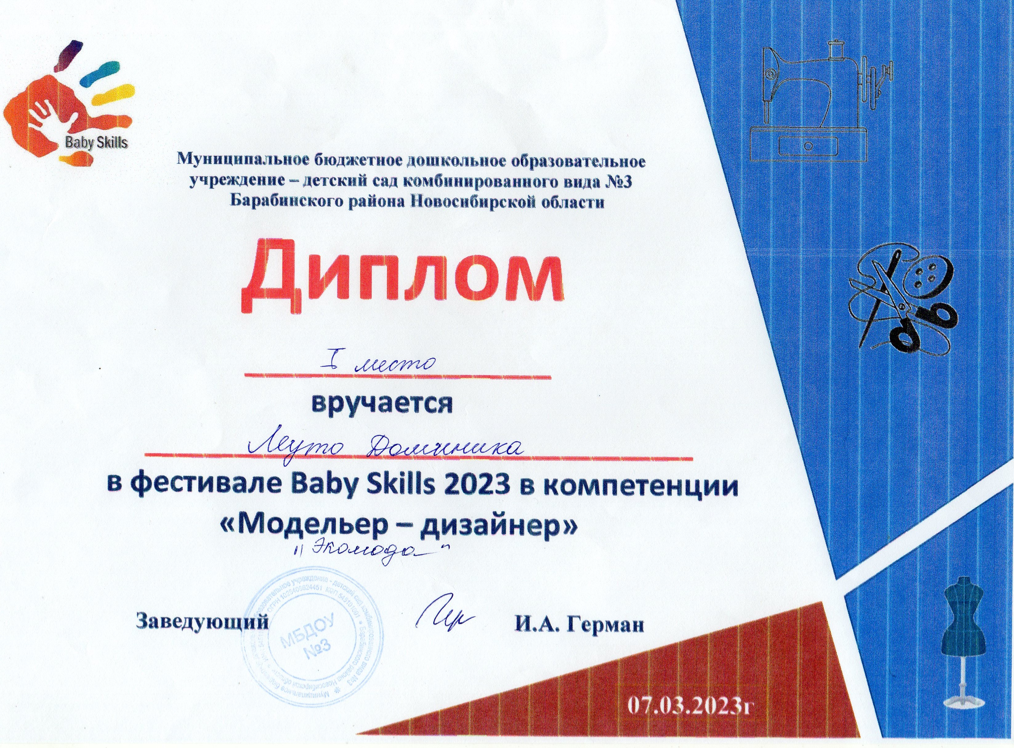 Фестиваль «Baby Skills» в номинации «Модельер - дизайнер»