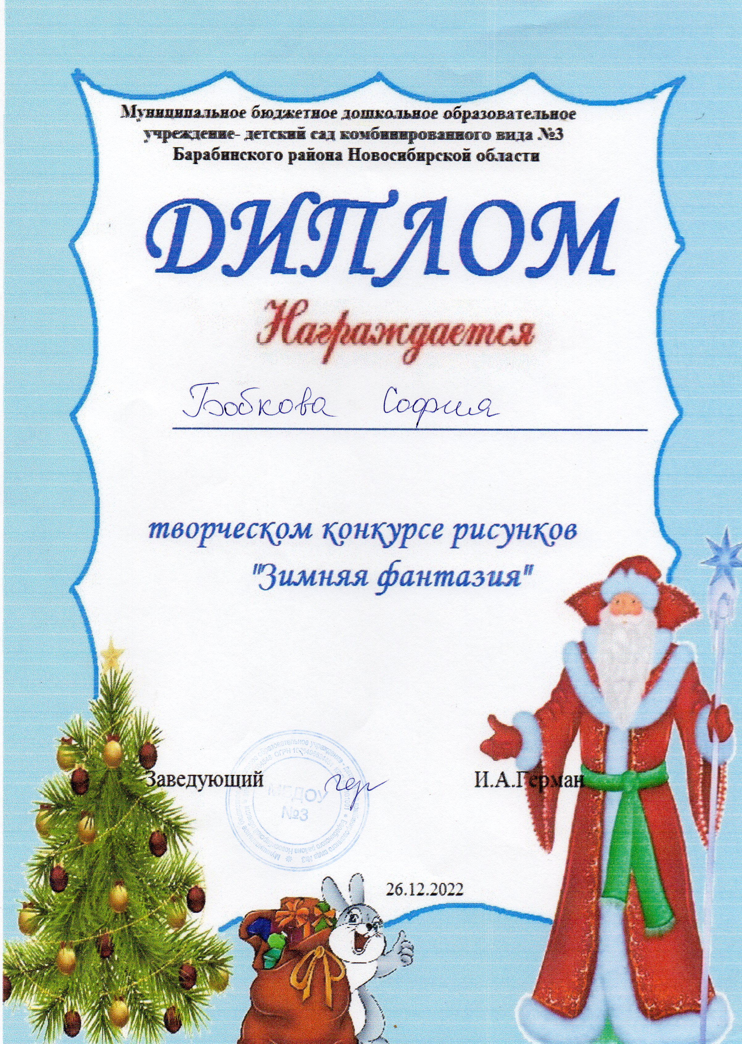 "Зимняя фантазия" 2022г- диплом участника